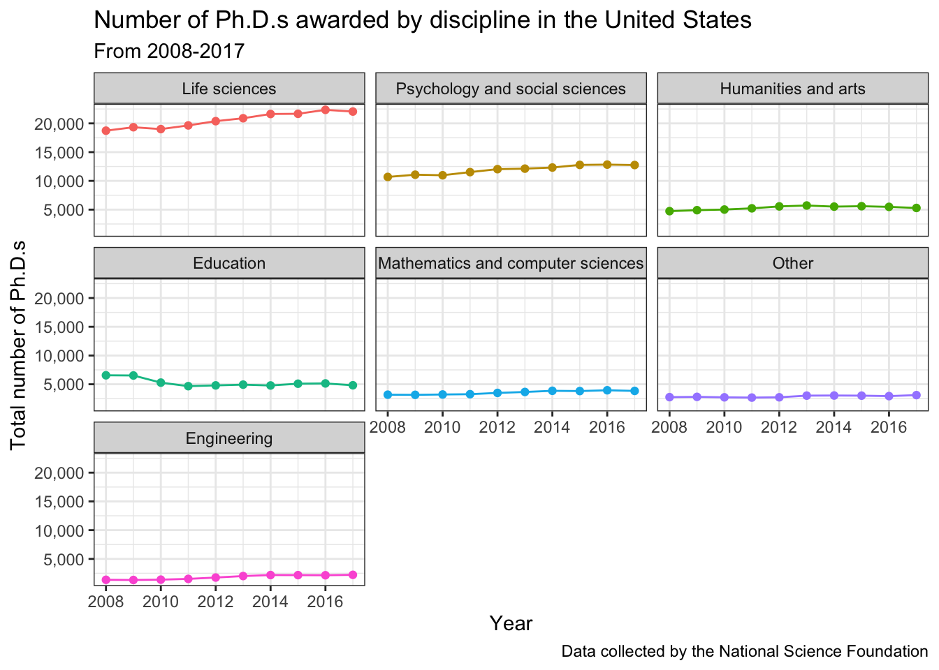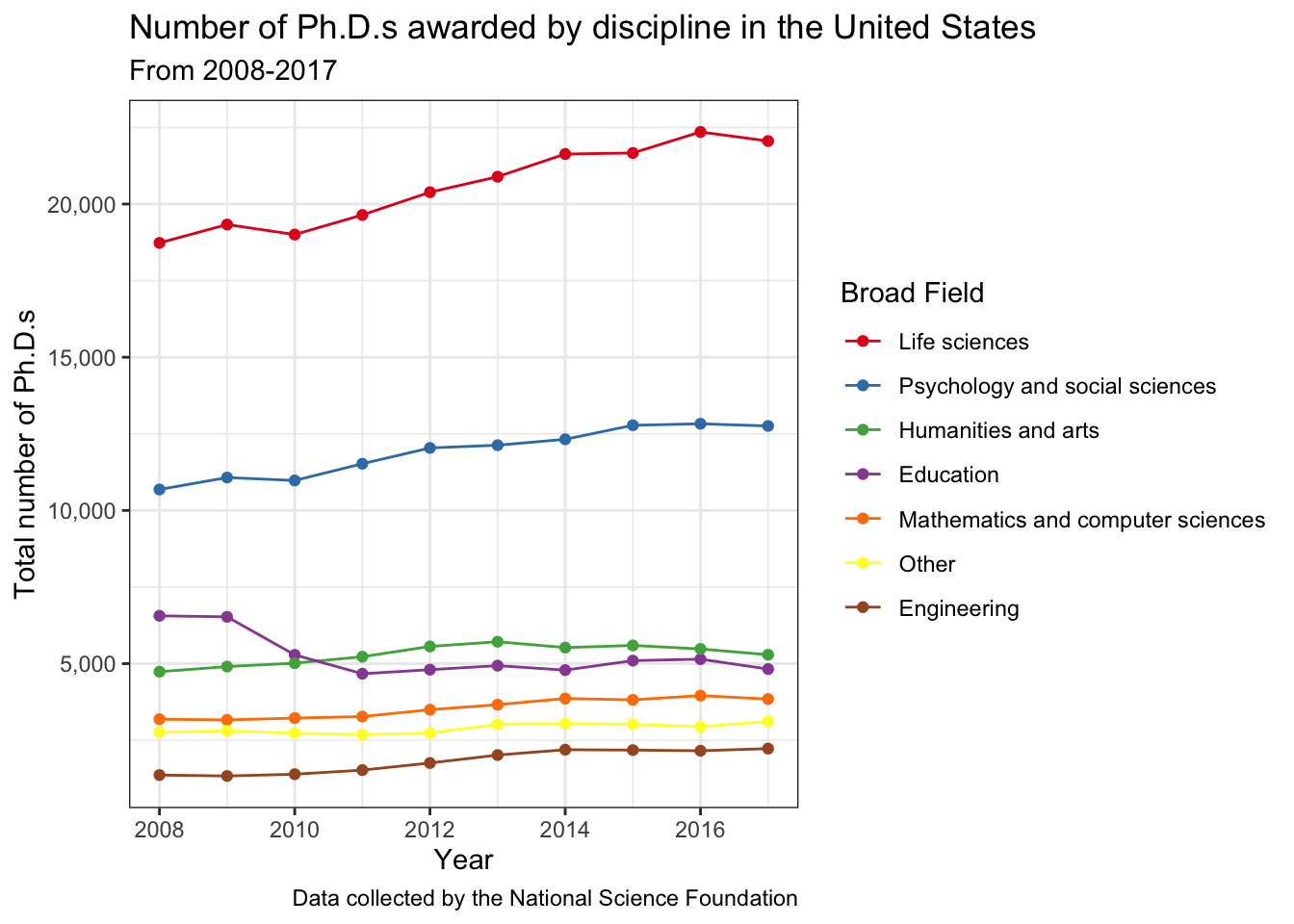 title = "Number of Ph.D.s awarded by discipline in the United States",