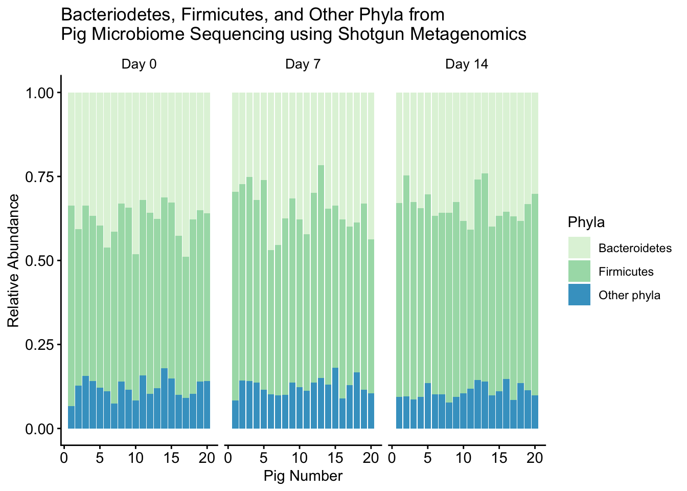 title = "Bacteriodetes, Firmicutes, and Other Phyla from \nPig Microbiome Sequencing using Shotgun Metagenomics") +
